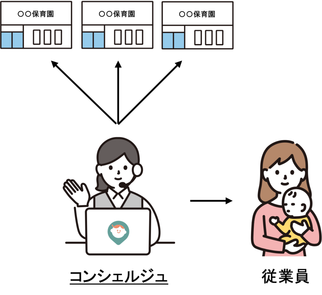 - 育児で忙しい保護者様の代わりに、コンシェルジュが希望に沿った保育園をご提案